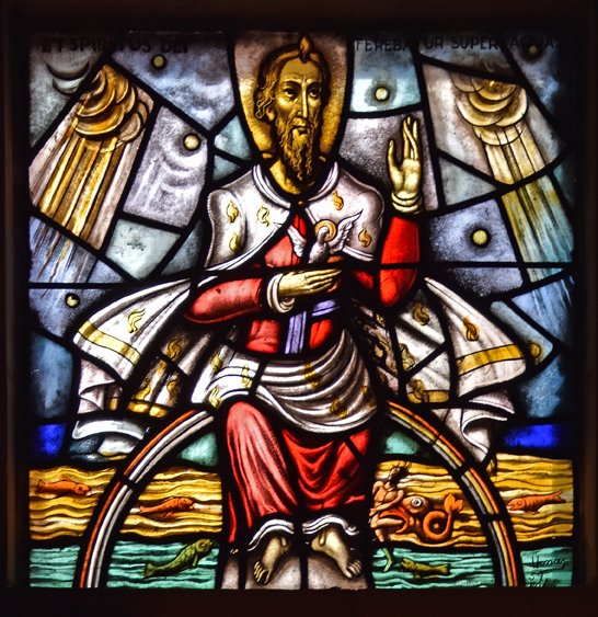 Schip en transept voorzien van een spitsboogvormig tongewelf, de zijbeuken met dwarsgeplaatste spitse tongewelven. Tussen schip en zijbeuken spitsboogvormige scheibogen. Onder in de toren de doopkapel.