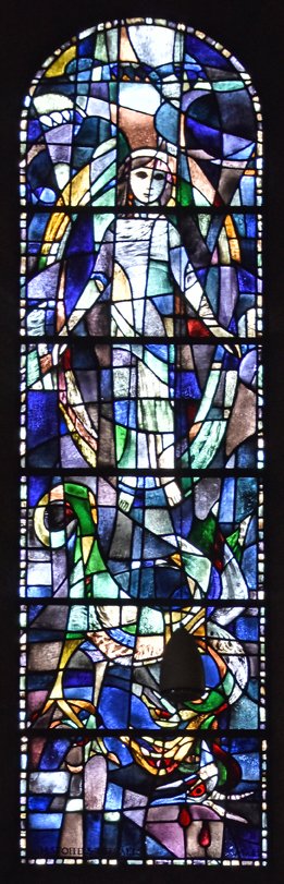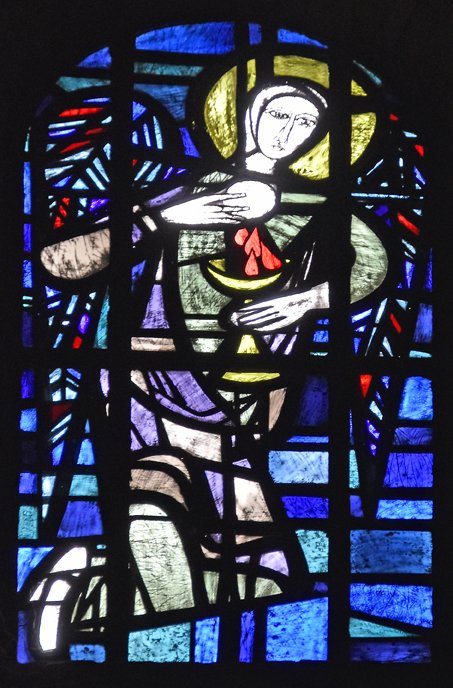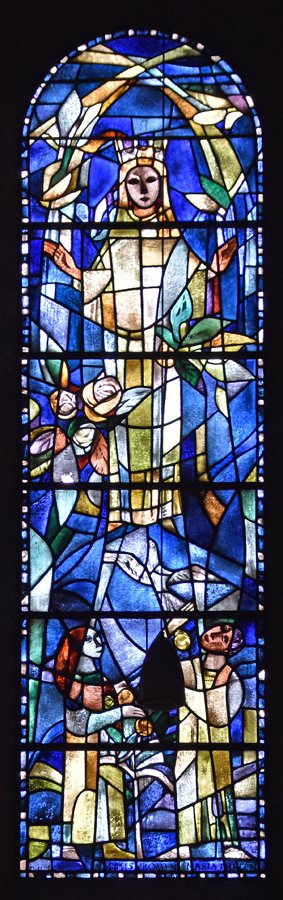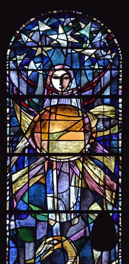 Positie 4, zuidzijde middenschip, Maria bekleed met de Zon, en gekroond met sterren, Marianne van der Heijden, 1962, gesigneerd: mvdH