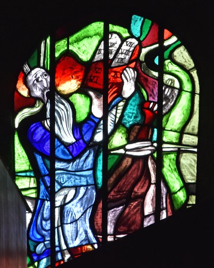 Positie 9, Orgeltribune/voorgevel, Mozes ontvangt de stenen tafelen, Jos Hermans, 1982