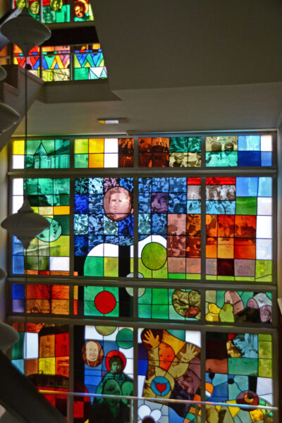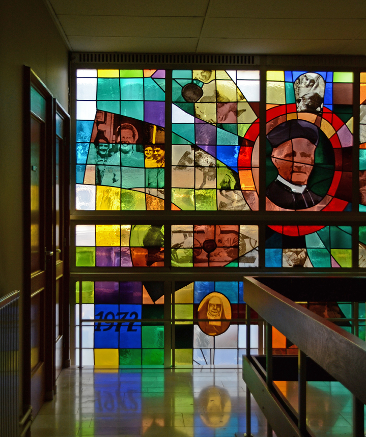 In het trappenhuis van het klooster “Huize de Berg”/”Sanatorium St. Joseph Heilbronn”, gebouwd in neo-renaissancistische stijl (1897) door architect A. van Beers uit Rotterdam, bevinden zich bijzondere glas-in-loodramen. Ze zijn in 1971 geplaatst bij gelegenheid van het 100-jarig bestaan van de congregatie van de Kleine Zusters van de Heilige Joseph, in 1872 gesticht door priester Peter Savelberg (Heerlen, 1827-1907). Op de ramen zijn personen en gebeurtenissen uit de historie van de congregatie uitgebeeld. De ramen zijn ontworpen door Hans Truijen (1928-2005) samen met zijn vrouw Atty en vervaardigd door atelier Hubert Felix in Maastricht.