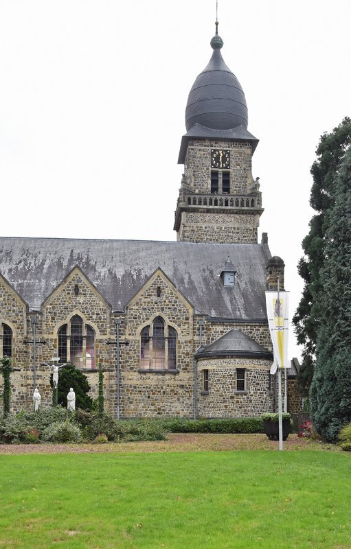 Onderin de toren een devotiekapel met een Lourdesgrot gemaakt van kunststeen uit 1932. In 1938 werd ook buiten de kerk een Lourdesgrot gerealiseerd.