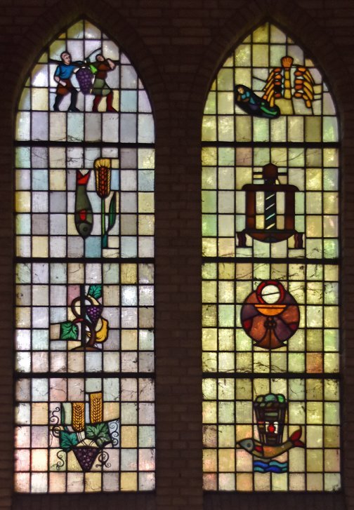 Het schip telt 7 traveeën. Per travee in de lichtbeuk 3 spitsboogvensters. In beide gevelzijden van het priesterkoor 2 spitsboogvensters. De smalle zijbeuken dienen als loopgang. In de zijgevels van de zijbeuken kleine spitsboogvensters.