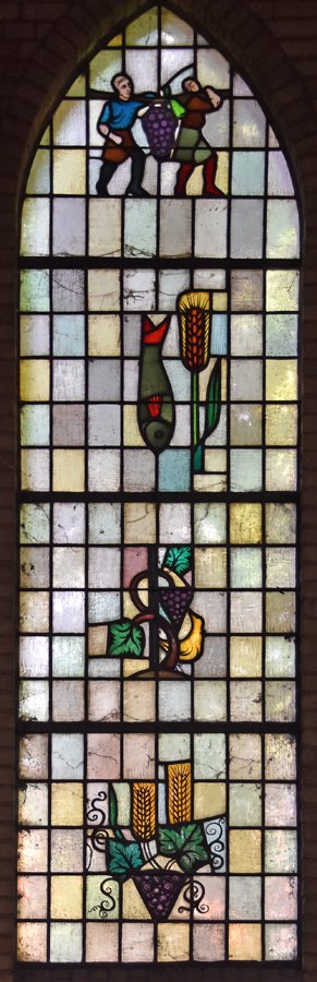 Op de scheiboog tussen schip en priesterkoor en die tussen priesterkoor en apsis, alsook op de achterwand van de apsis muurschilderingen van Jacques Verheyen uit 1942. De kruiswegstaties en een Don Boscobeeld zijn van de Heerlense kunstenaar Sjef Drummen (1958).