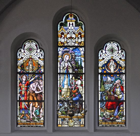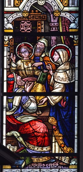 Positie 9, Maria-altaar, dr. Heinrich Oidtmann, 1917, groep van drie ramen betreffende Maria-mysterie