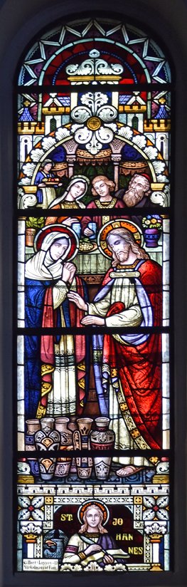 Positie 10 t/m 14, apsis-wand, ramen met belangrijke gebeurtenissen uit het leven van Maria, dr. Heinrich Oidtmann, 1917