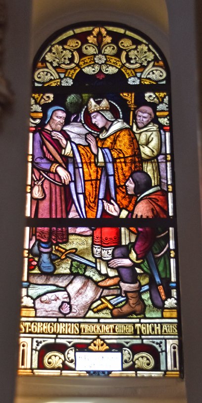 Positie 17, St. Gregorius de Wonderdoener (213-270), tekst: “St. Gregorius trocknet einen Teich aus”.