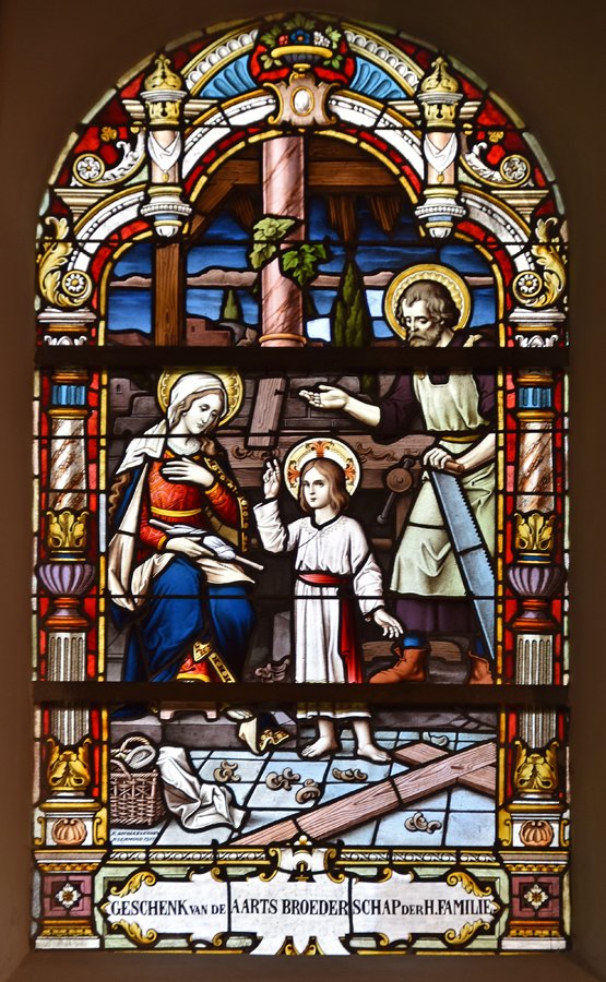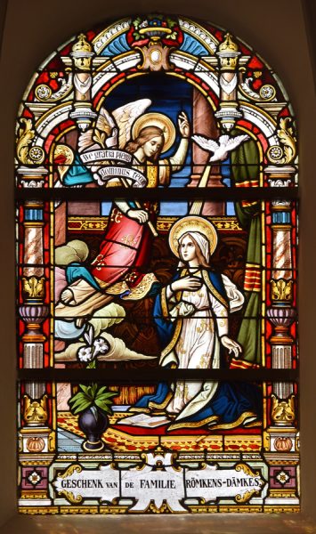 In de beide dwarskapellen, de zijkoren en het priesterkoor 9 kleurrijke glas-in-loodramen van het Roermondse Atelier Frans Nicolas en Zonen uit 1915 met afbeeldingen van heiligen en taferelen uit het Nieuwe Testament. De ramen zijn geschonken door verenigingen en vooraanstaande families of personen uit Schaesberg