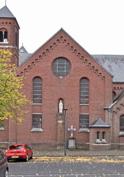 Tegen de gevel van het zuidertransept een beeld van de aartsengel Michael, tegen de gevel van het noordertransept een beeld van H. Martinus met gans, bisschop van Tours. Op het plein rondom de apsis een gietijzeren H. Hartbeeld van Pohl und Esser uit 1920, geschonken door de parochianen.
